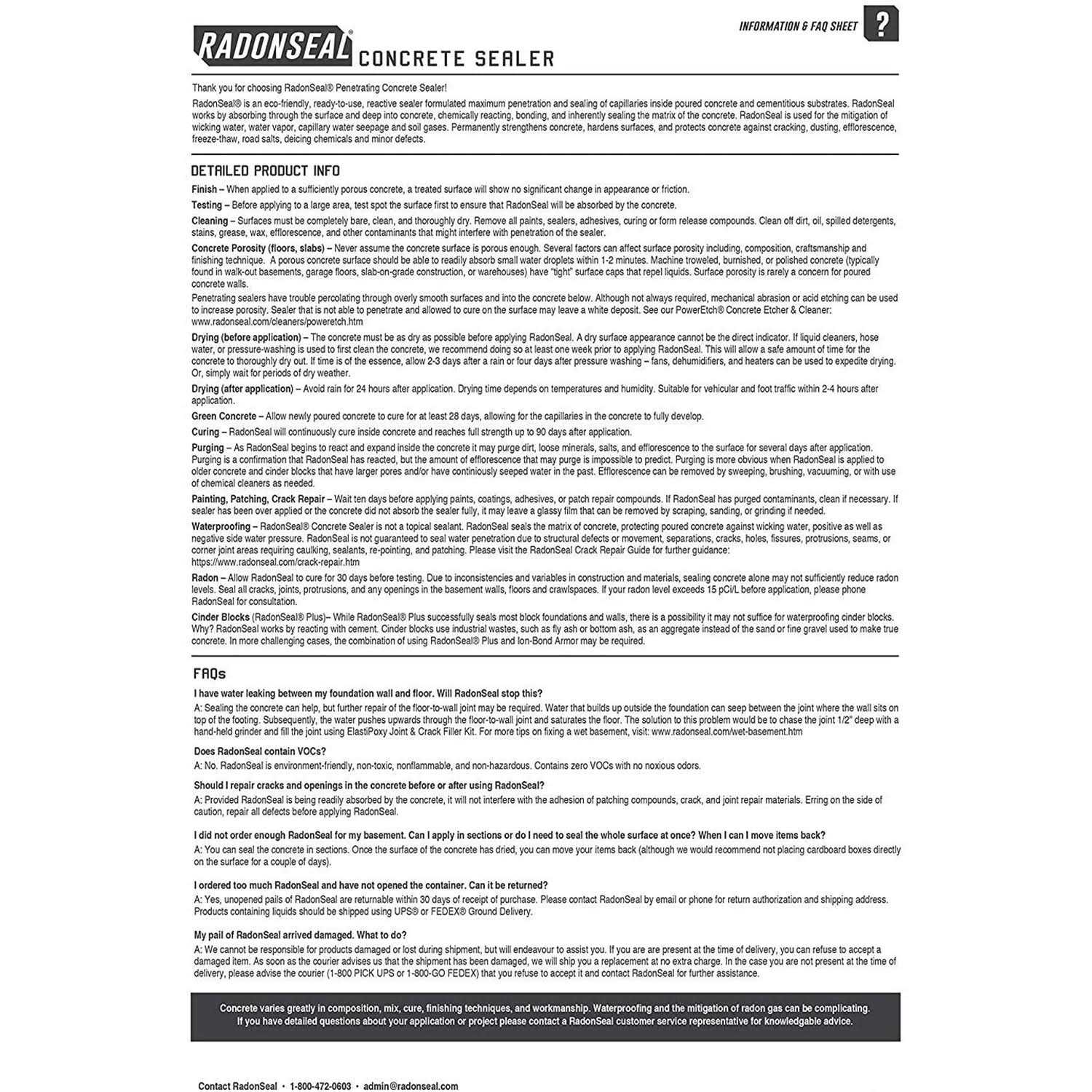 RadonSeal Outdoor/Indoor Concrete Clear Penetrating Protectant Sealer, 5 Gallon