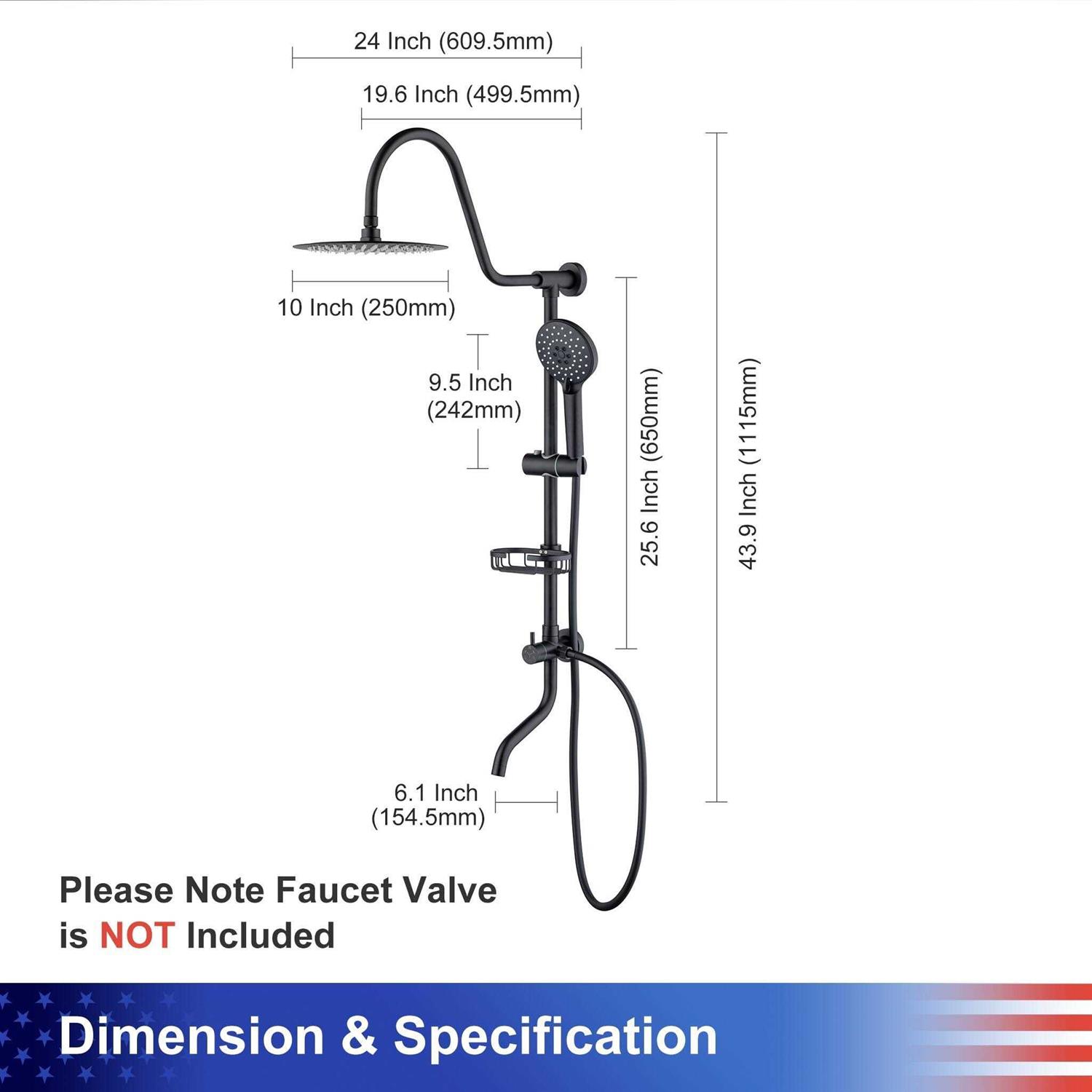 The RAINLEX 3-ways Rain Shower System is designed to use your existing valve, it replaces the old showerhead with an elegant rain showerhead and multi-function hand shower. Most impressed feature is the tub filler water way, it can fill in the tub very quickly and no need to change the valve. The integrated brass slide bar allows adjustable height control for the hand shower and brass soap dish while providing a conveniently located diverter for switching functions. The 10 in. shower provide luxury shower experience, the multi-function hand shower can be used separately or together. Available in chrome, brushed nickel, matte black or brushed gold to match any decor. It takes about 30-minutes to replace the old shower head. Please note this Shower System does not come with a hot/cold mixing valve. The cUPC certificate assume the quality.