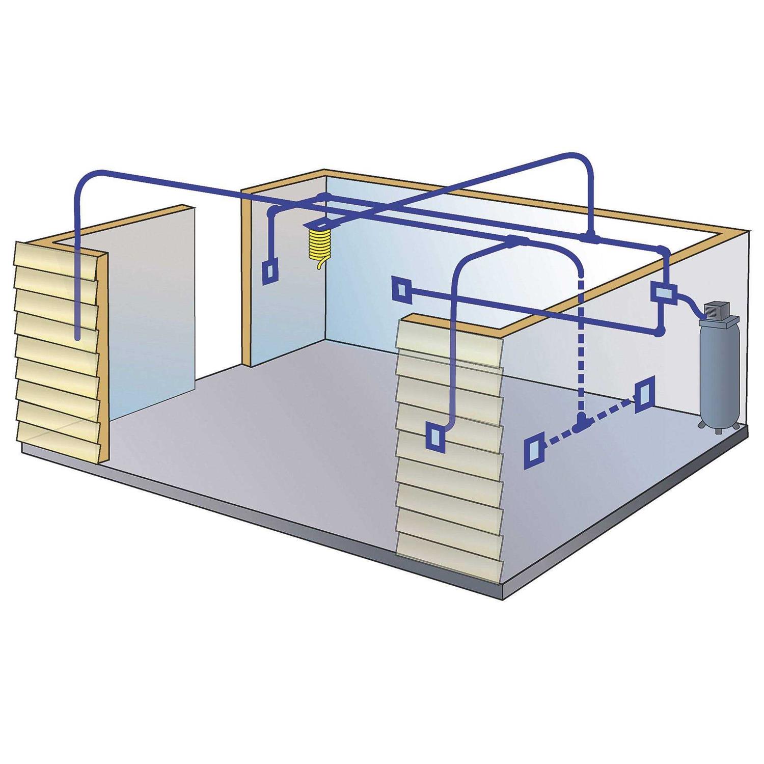 Compressed air outlet can be used for in wall surface mount or ceiling mount applications. Mount in any location you use compressed air. Comes with water vapor drain.Add a RapidAir tee fitting to adapt additional outlets to your system or master kit.Ported in 1/4 npt and 3/8 npt.