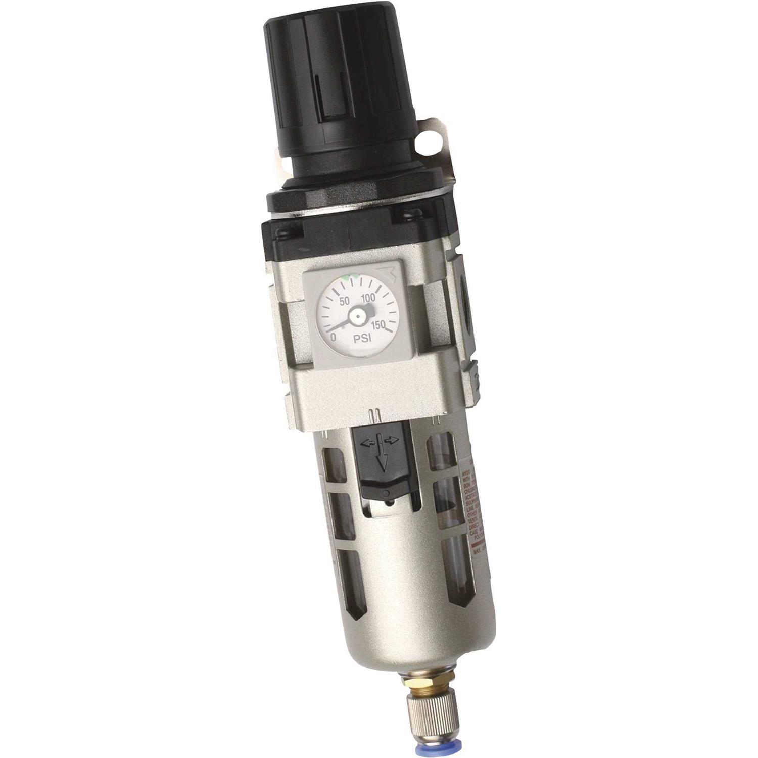 Keep your house running in tip-top shape with the RapidAir MaxLine K93217 0.75 Inch NPT Filter Regulator.Protect your family and loved ones safe with this regulator filtering out harmful substances. This general-purpose 5-micron filter protects air compressor tools by removing harmful solid particles and liquid contaminants from your machine while the regulator allows the pressure adjustment of your compressed air system. Say goodbye to leaks with this well-fitted regulator. This filter regulator combination has been designed to save space when it combines both actions into a single unit. The flow direction is also reversible by simply relocating the gauge to the opposite side. These regulators are constructed of heavy-duty zinc die-cast bodies to give you a lifetime of use. It also features a manual drain and metal bowl guard. The maximum inlet pressure is 175 PSI, operating range 0-150 PSI.Filter out substances with ease with the RapidAir MaxLine K93217 0.75 Inch NPT Filter Regulator.