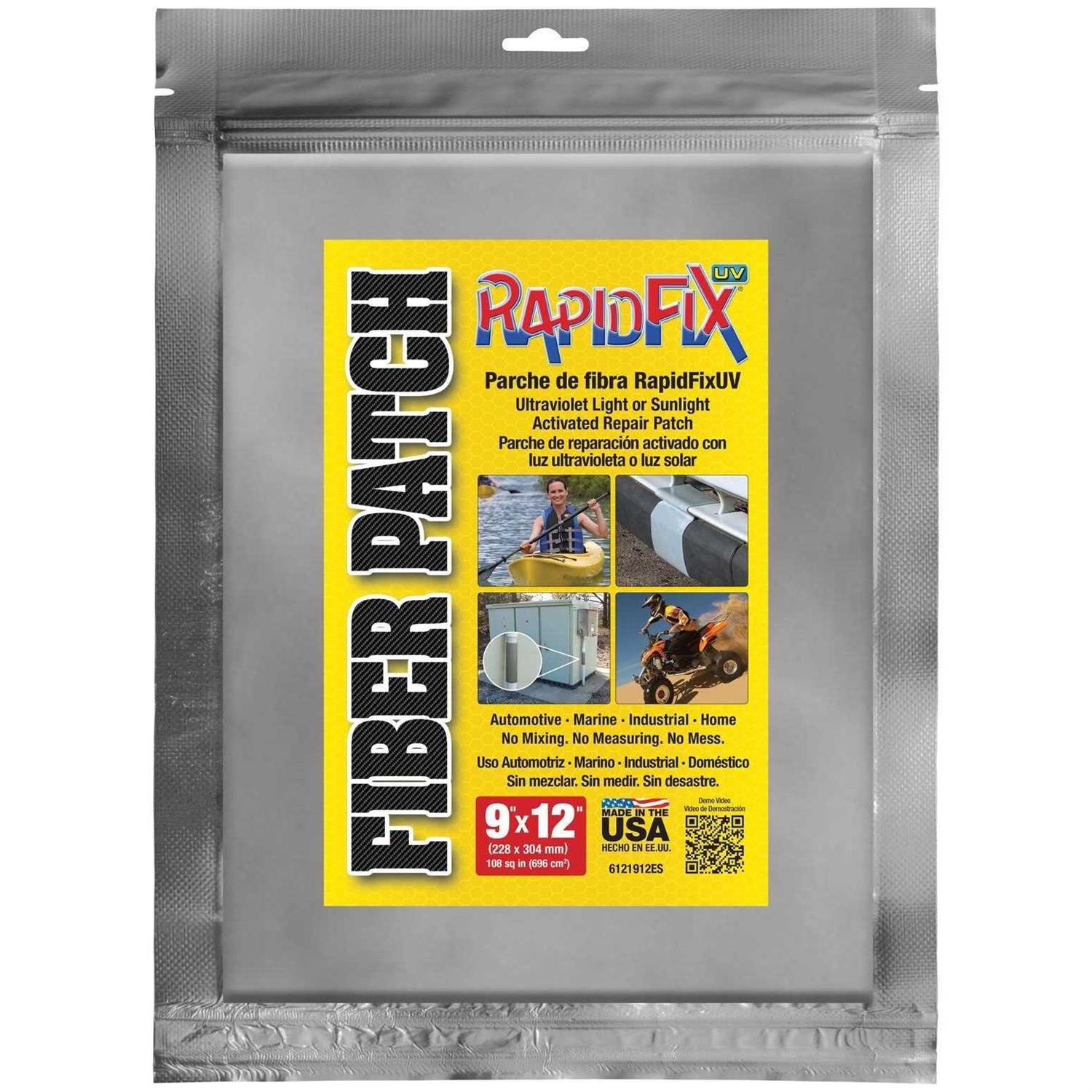 RapidFix UV fiber patch is an easy-to-use UV light/sunlight activated, self-adhesive repair patch. Made of fiberglass reinforced polyester with extremely good adhesion properties for long-lasting repairs. Fiber patch is non-flammable, non-toxic, and adhesive is not harmful to skin. Easy to apply, no mixing. No weighing. One step. No mess.