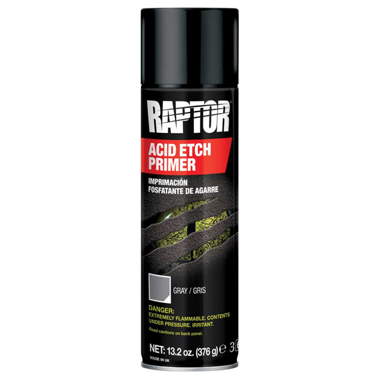 RAPTOR Acid Etch Primer Gray is a 1K phosphoric and acid ester formula that promotes paint adhesion to difficult substrates like galvanized steel and aluminum. Its ideal for rub throughs in primer prior to application of color and on new bare panels.