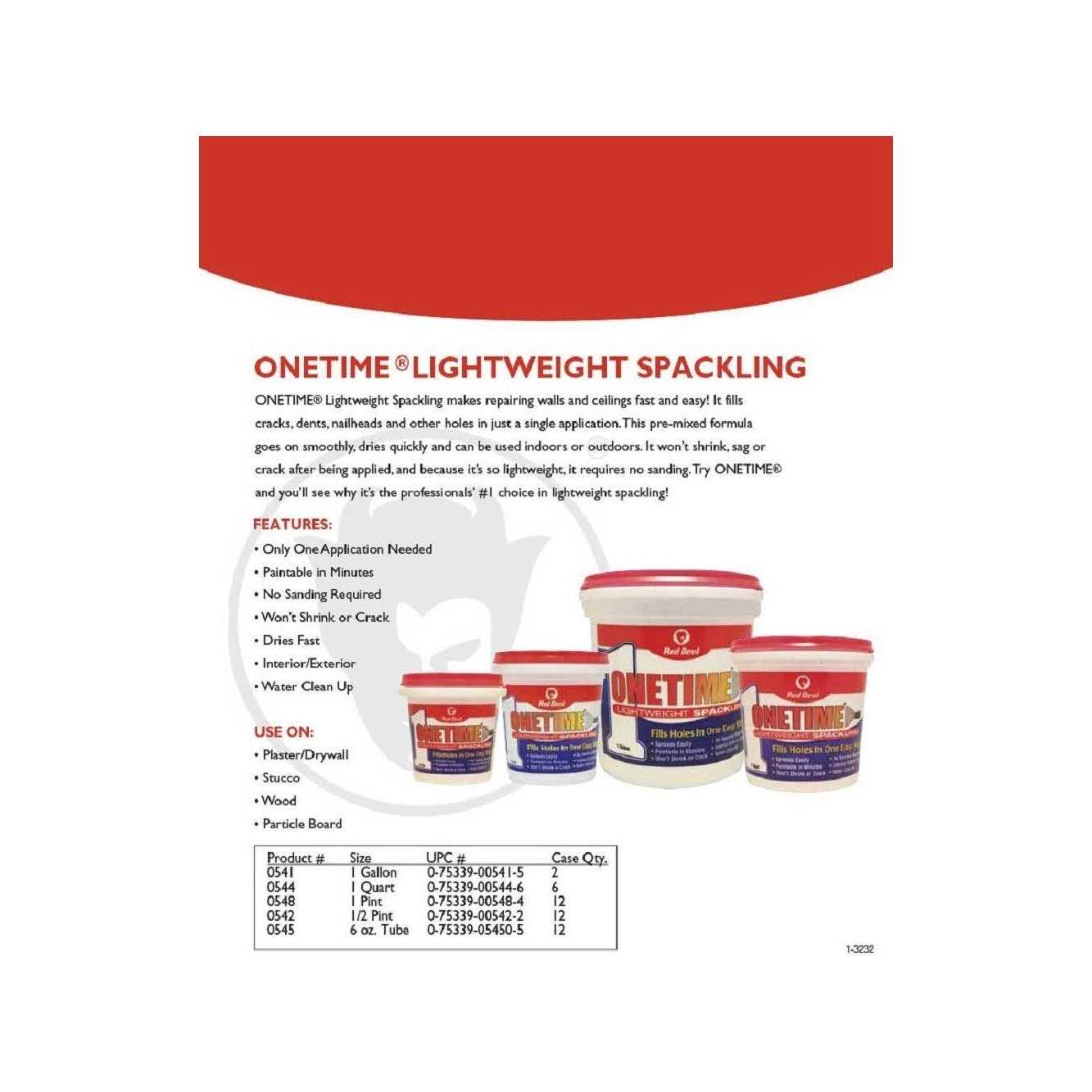 Red Devil 0541 Onetime Lightweight Spackling (1 Gallon)