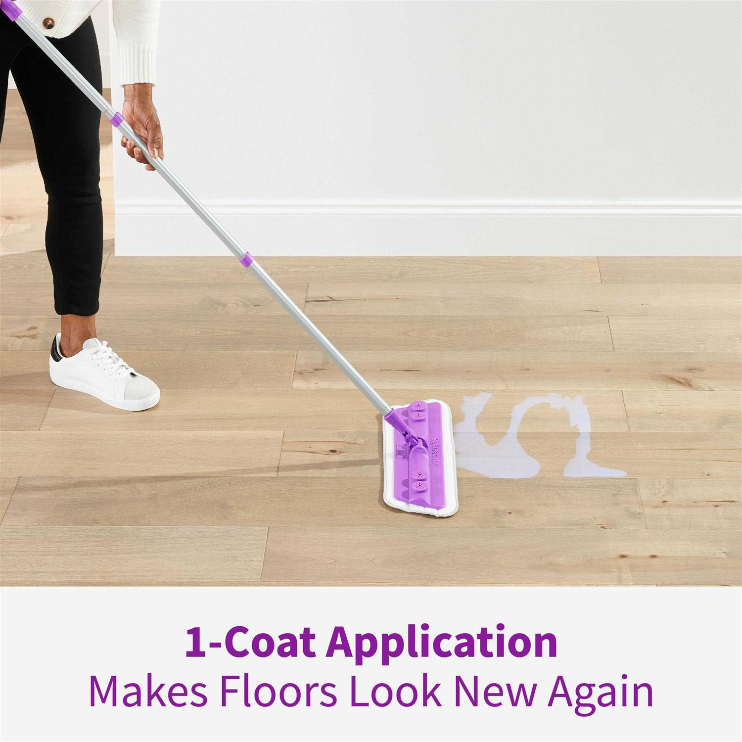 - Fills in scratches, restores shine in one easy mop on application