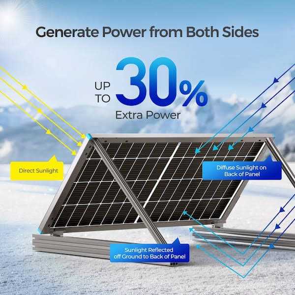 Renogy Bifacial 220-Watt 12-Volt Solar Panel Monocrystalline PV Module Power Charger for RV Marine Rooftop