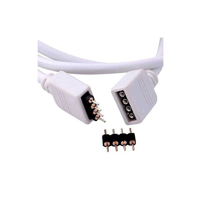 This extension cable is a perfect accessory for RGB 5050 3528 LED strip light/ribbon, to extend length between led strip and controller or to extend length between led strips, enable you to install your led strips in your preferred locations. Specifications: 1) The insulation plastic of this cable adopts high quality PVC, anticorrosive. 2) This extension cable contains 4 strands of pure copper wires inside, which ensures perfect electric conductivity. 3) The cable is durable and the connectors fit snug. 4) With 4 x 4pin male plug included. No need to weld, just plug to connect, easy to install and storage. Package includes: 2 x 1M 4pin extension cable for RGB LED strips 4 x male to male 4pin plugs