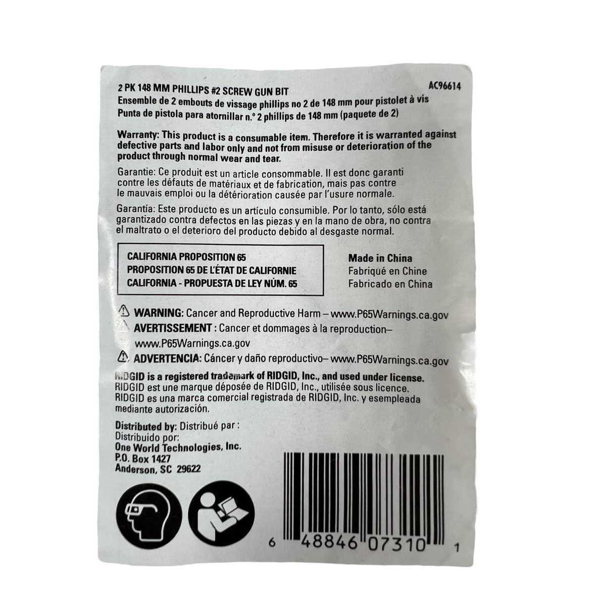 Ridgid 148 mm Philips #2 Screw Gun Bit (2-Pack) for Screw Gun R86630