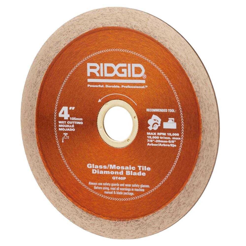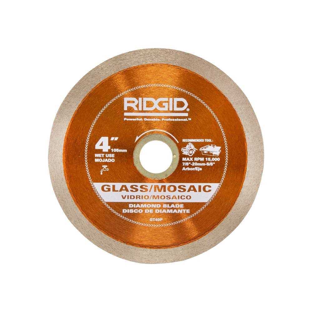 RIDGID Glass Tile Diamond Blades are engineered to cut glass tile, glass mosaic tile, and multi-finish mosaic tile. The continuous rim design with very fine diamond particles achieve precise, chip-free cuts helping you work quickly and effectively. Use this blade on 4 in. wet tile saws and 4 in. handheld wet tile saws that have a 7/8 in. arbor, 5/8 in. and 20mm adapters included.