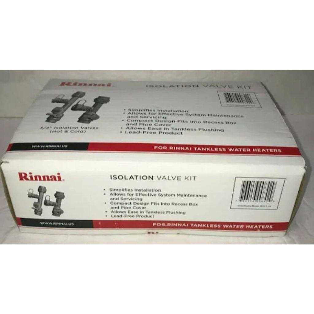 Rinnai Plumbing Isolation Valve Kit- works with most tankless water heater brands Compact design Ease in Tankless Flushing Threaded Female Connections Lead-Free Rinnai recommends the use of an isolation valve kit when connecting the water lines to the water heater. This kit meets all individual states’lead-free standards. Use of this kit will allow flushing of the heat exchanger as well as aid in servicing and troubleshooting. This kit comes with a PRV ValveNot Pictured.