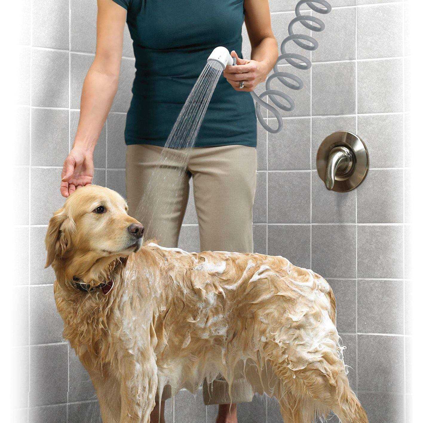 This bathing solution offers three types of sprayers for cleaning your pal. The ergonomic hand-held sprayer lets you toggle between different water pressure settings—gentle, concentrated or full. These settings help while cleaning sensitive spots like your pal’s cute face or areas that need a more powerful spray to remove dirt or debris. It can be easily attached to your sink or shower and the outdoor hose connection lets you clean dirty paws before entering the house. The ten-foot hose also extends and retracts for easy storage. This highly adaptive bathing solution can be attached to your sink, shower or outdoor hose connection. The ergonomic hand-held sprayer features an on/off water control and provides eco-friendly water flow. Gives you the option to change water pressure settings between gentle, concentrated or full. The outdoor sprayer feature lets you clean your pal’s paws before entering the house. The 10-foot coil hose extends and retracts for easy storage. No tools required.