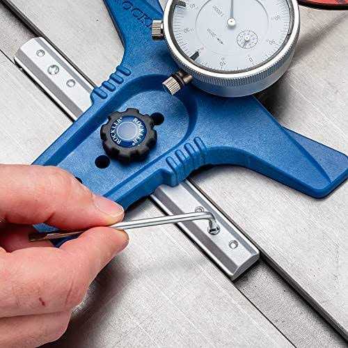 Thanks to its precision dial indicator, our Table Saw Alignment Gauge makes even the tiniest deviations from parallel easily visible. Once you’ve used it to tune up your saw, you’ll enjoy the cleanest possible cuts, with minimal burning and scoring. Of course, since it helps to prevent blade binding, it’s also a crucial safety adjustment. The aluminum miter bar features expandable glide blocks for a snug fit, while still allowing smooth motion. Fits any saw with a standard 3/8” x 3/4” miter slot between 3-3/4” and 7-3/4” from the blade. Features: Unrivaled accuracy for adjusting your table saw fence and blade parallel to the miter slot essential for clean, safe cuts – Aluminum miter bar has expandable tensioning glide blocks for a snug fit in the miter slot, while also allowing smooth motion – Miter bar has chamfered top corners for a secure wedge fit in the six grooves on the underside of the gauge – Precision dial indicator pivots up and down for positioning, has 1” plunger travel and is accurate to .001”Glass-reinforced plastic body has outrigger feet to prevent rocking in the miter slot – Low-friction touchpoints on underside add stability while easing movement of the gauge in the slot – Molded finger grips and hang hole for easy storage – Fits a standard 3/8” x 3/4” miter slot between 3-3/4” and 7-3/4” from the blade – Molded tray in box can be used for storage | Rockler Table Saw Alignment Gauge