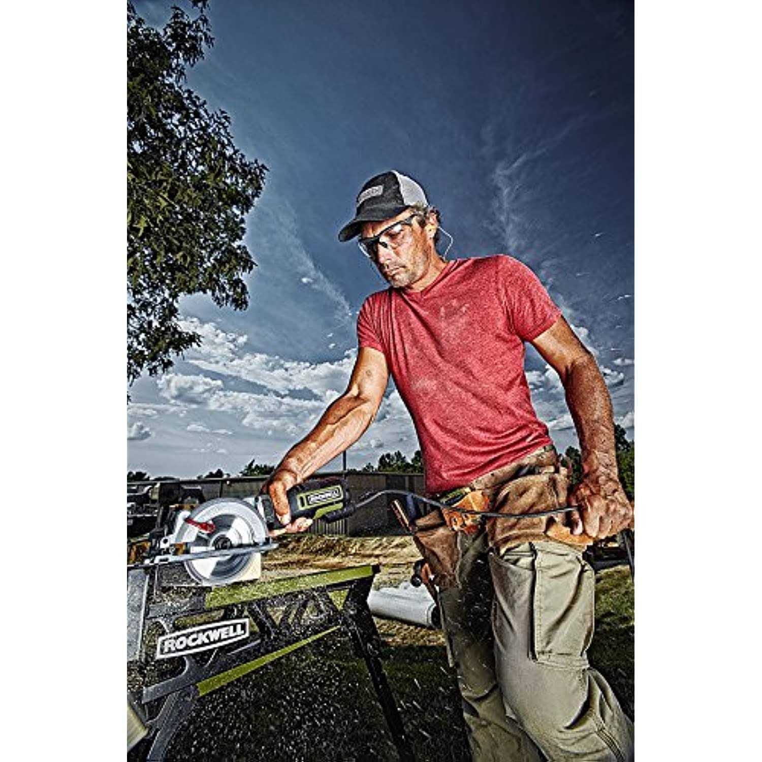The Rockwell Compact 4-1/2-inch Circular Saw (RK3441K) is a powerful and functional circular saw which can replace conventional 7-1/4-inch circular saws. No need for a bulky circular saw when the Compact Circular Saw will cut 2x4s and sheet goods in the same amount of time with ease and comfort, thanks to its lightweight and compact design. Youll finish your jobs quicker without having to drag out the big heavy circular saw. Most cuts made with circular saws are on materials less than 2″ thick. With the Rockwell Compact Circular Saw, tackle any of these jobs with ease, comfort and control and with just one hand. The slim grip handle improves comfort while enhancing grip and control, allowing you to guide the saw with just one hand. The result? Quick, easy operation with increased maneuverability for making cut-offs, plunge cuts and rips. Ideal for wood, especially plywood, hardwood flooring, nominal 2 lumber, molding, pegboard, dowels, etc.