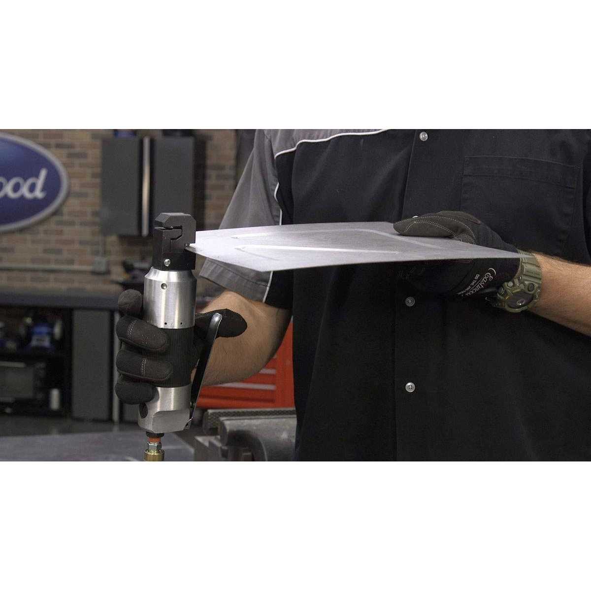 The Rockwood Air Punch and Flange Tool helps make quick work of seamless repairs by flanging and punching, utilizing the power of compressed air. Produces 0.063” offset flanges Makes perfectly clean 0.19”-diameter holes Works on 16 Gauge Mild Steel / 18 Gauge Stainless Steel Requires only 4 CFM @ 90 PSI One side of the double-action head produces 0.063” offset flanges on 16-gauge metal or thinner for flush seams when joining panels. The other side produces perfectly clean 0.19”-diameter holes that are ideal for plug welding. Unique swivel-head design lets you work from almost any angle.