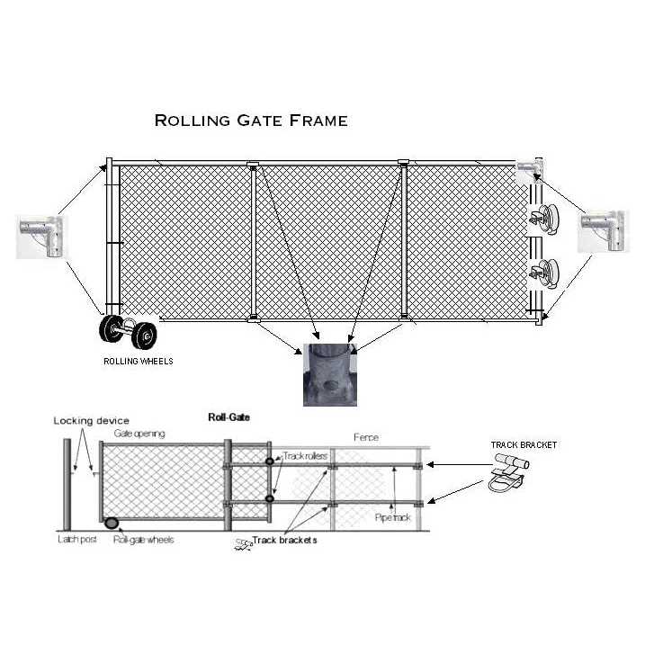 One 6″ double wheel carrier Two 5″ x 1-5/8″ pipe track rollers Six 1-5/8″ universal track brackets, U-bolt 3″ One 1-5/8″ rolo latch Two 1 5/8″ rear wheel brackets Rolling Gate Hardware Kit for Chain Link Gate Sliding Gate Hardware made with galvanized steel, this hardware kit was created to be durable and long lasting