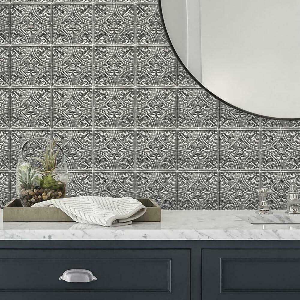 RoomMates Silver Tin Peel and Stick Tile Backsplash