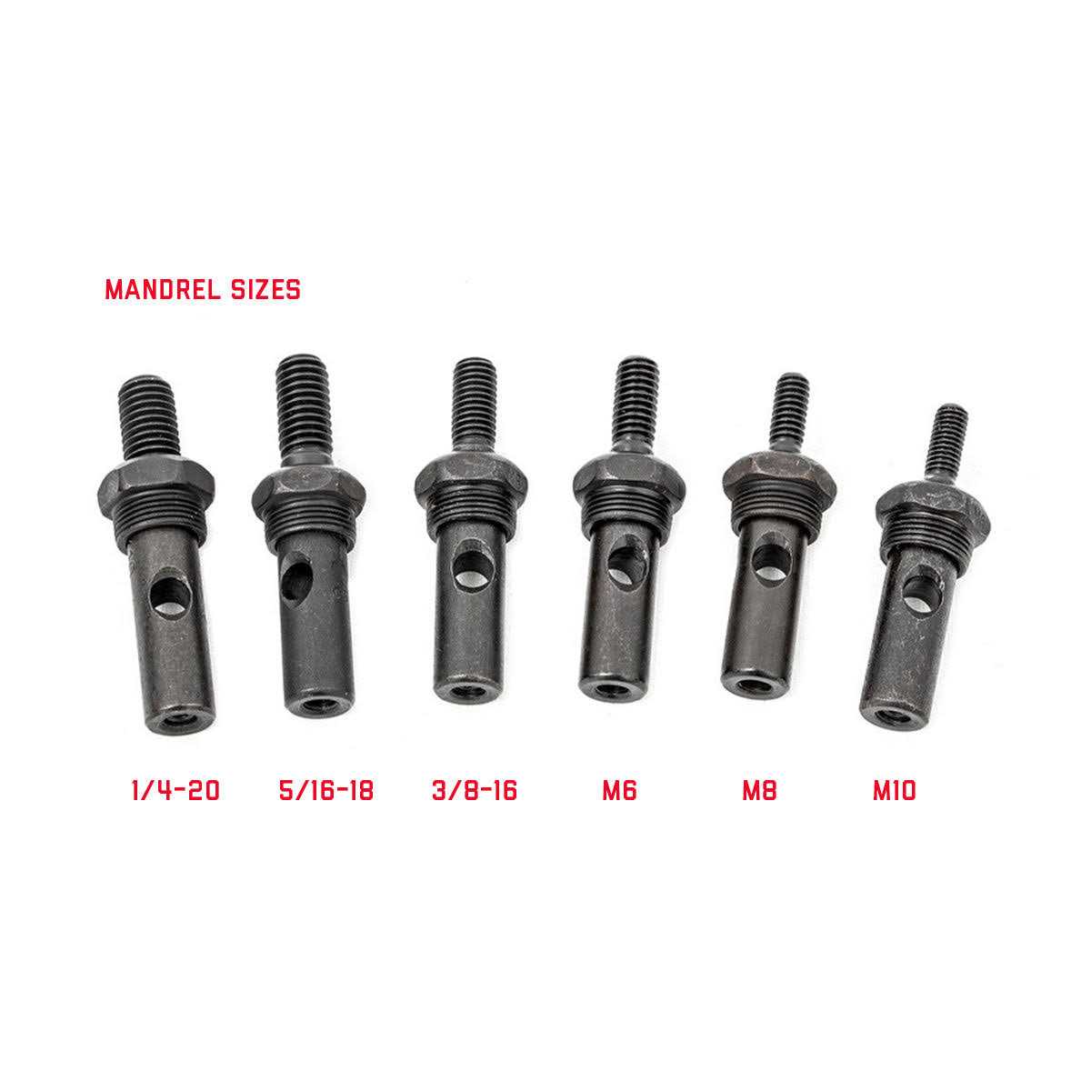 - SAE and Metric Mandrels | 1/4-20 | 5/16-18 | 3/8-16 | M6 | M8 | M10.