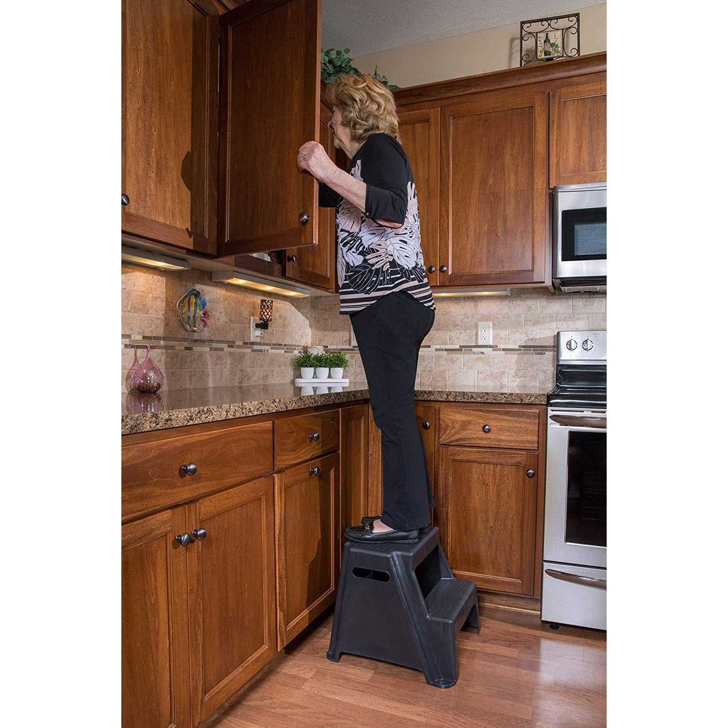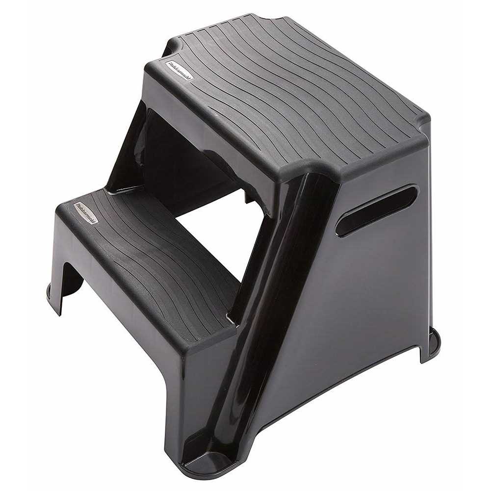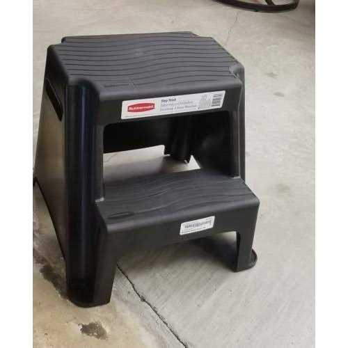 Incorporate the Rubbermaid 2-Step Molded Plastic Stool with Non-Slip Step Treads into your home for a convenient boost. It’s an ideal tool when you need a little extra height for items in the kitchen, bathroom, office or garage. This Rubbermaid plastic stool comes in a black finish that looks good in just about any home. With its solid molded plastic frame, non-slip step treads and 300-pound weight capacity, you’ll feel safe and comfortable getting to those hard-to-reach places, such as upper cabinets, pantry shelves and more. The stool features non-marring feet that are gentle on most flooring types. A large standing platform gives you ample stability as you complete your tasks. The dimensions are adequate for a huge variety of applications, but still compact enough to store in a large cabinet when you aren’t using this item. Cutout handles provide easy portability, allowing you to move this lightweight 2-step plastic stool throughout your home.