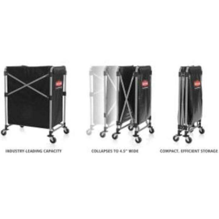 Features. Durable easy-to-maneuver basket truck efficiently transports large bulk loads and then you can conveniently collapse it to minimize storage footprint. Cart’s width is reduced by 75 percent when collapsed. Collapsible X-Cart stays upright in the collapsed position. Robust stainless steel powder-coated frame prevents rusting and supports 220 lbs. of load. With the Multi-Stream advantage the 8-bushel capacity is split into two baskets to easily divide and sort materials. Color-coded ribbons classify transport materials to prevent cross-contamination. Premium quiet casters swivel for superior maneuverability. Bumper guards add extra protection during transport. Detachable bag is easy to clean.