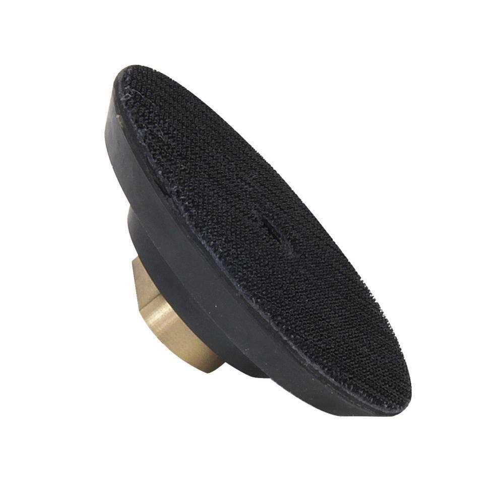 Within the range of polishing pads for natural stones, RUBI has a semi-flexible holder, particularly suitable for secure fixing of all polishing pads in the range. The polishing pads are fixed to the holder by VELCRO. The holder provides solid and secure fixing of the whole polishing pad surface. The semi-flexible body of the holder for RUBI polishing pads can be adapted to non-regular contours of the surfaces to polish. Key Features The holder for RUBI polishing pads allows polishing work with a portable electric polisher or grinder, in both wet and dry work. The bevelled edges of the polishing pad holder offer more comfort during the polishing work and a perfect adaptation to the contours of the different surfaces to be worked on, as well as working in curves without losing firmness on flat surfaces. The pad holder comes with a 5/8″ thread for direct connection to a grinder or electric polisher. The RUBI polishing pad holder operates at a maximum speed of 5,000 rpm.