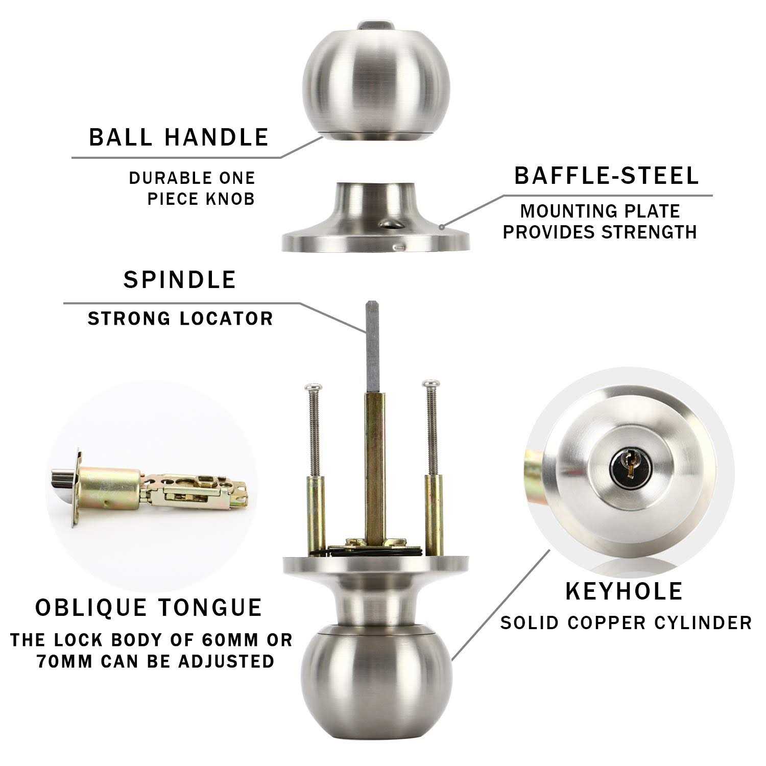 This lock is made of stainless steel materials, which can enhance elegant and shining for front and bathroom doors. Not only easy installation but also with smooth surface. When you open the door using it, the sound is clear and comfortable. Youngsters like it very much. Satin stainless steel commonly uses the latch on the front door or back door, and use the key to operate from the outside of the home and turn the thumb from the inside.