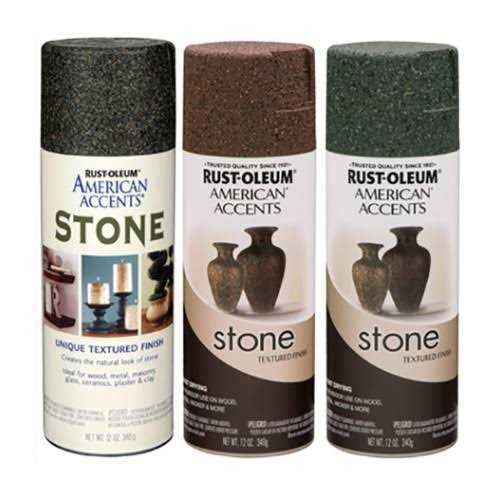 Rust-Oleum American Accents Stone Spray creates the natural look and feel of stone. It provides a long-lasting decorative finish on a variety of surfaces. For best results, first apply a base coat that blends with the stone finish and add a protective top coat following application of stone finish for maximum durability.