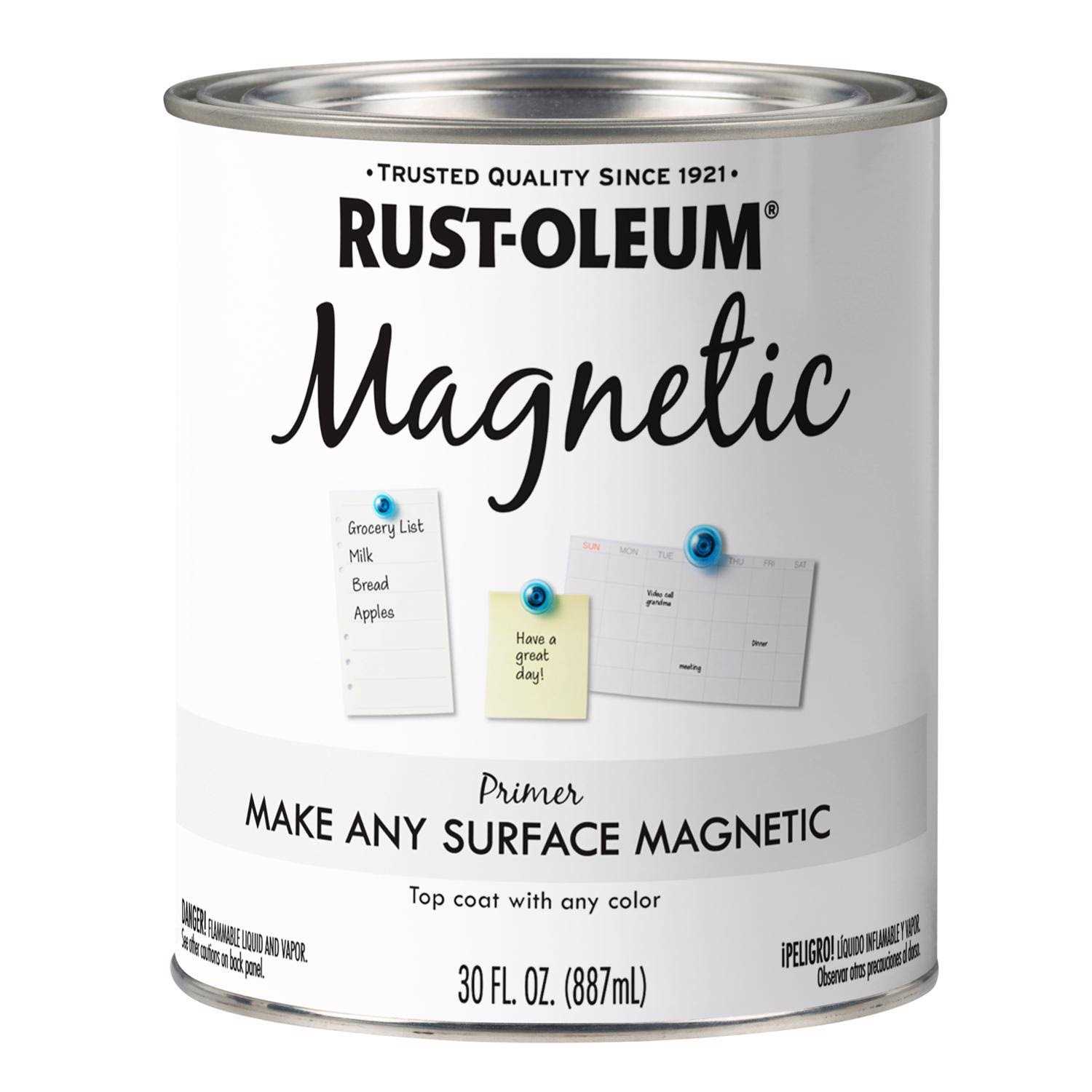 Creates a surface that attracts magnets in kids rooms, offices, kitchens, and more. Premium latex formula applies easily and provides a magnetic finish that can be topcoated with any latex paint. Base coat can be applied to wood, metal, masonry, drywall, and plaster. Covers approximately 16 sq ft per can with 3 coatings. Clean up with xylene immediately. 30 fl. oz.