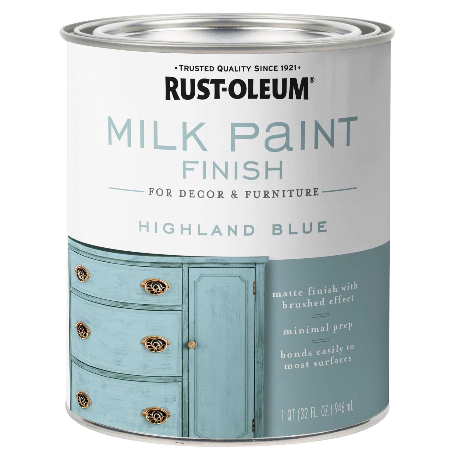 Rust-Oleum s Milk Paint Finish creates a subtle matte, brushed effect with a light texture. Increased durability and adhesion properties built into the formula means Milk Paint Finish won t chip. Milk Paint Finish is easily layered in order to achieve the desired coverage. Available in 6 on trend colors, Milk Paint Finish is popular for home décor and furniture projects. This Milk Paint Finish highlights the original details of the piece, giving an antique look and feel. Recommended for wood (raw and painted/varnished), metal, aluminum and glass. Easy Application with minimal prep needed. Low VOC and water-based for easy clean up. Quick drying with a low order allowing for easy use in any environment. Lightly textured feel with a matte finish.