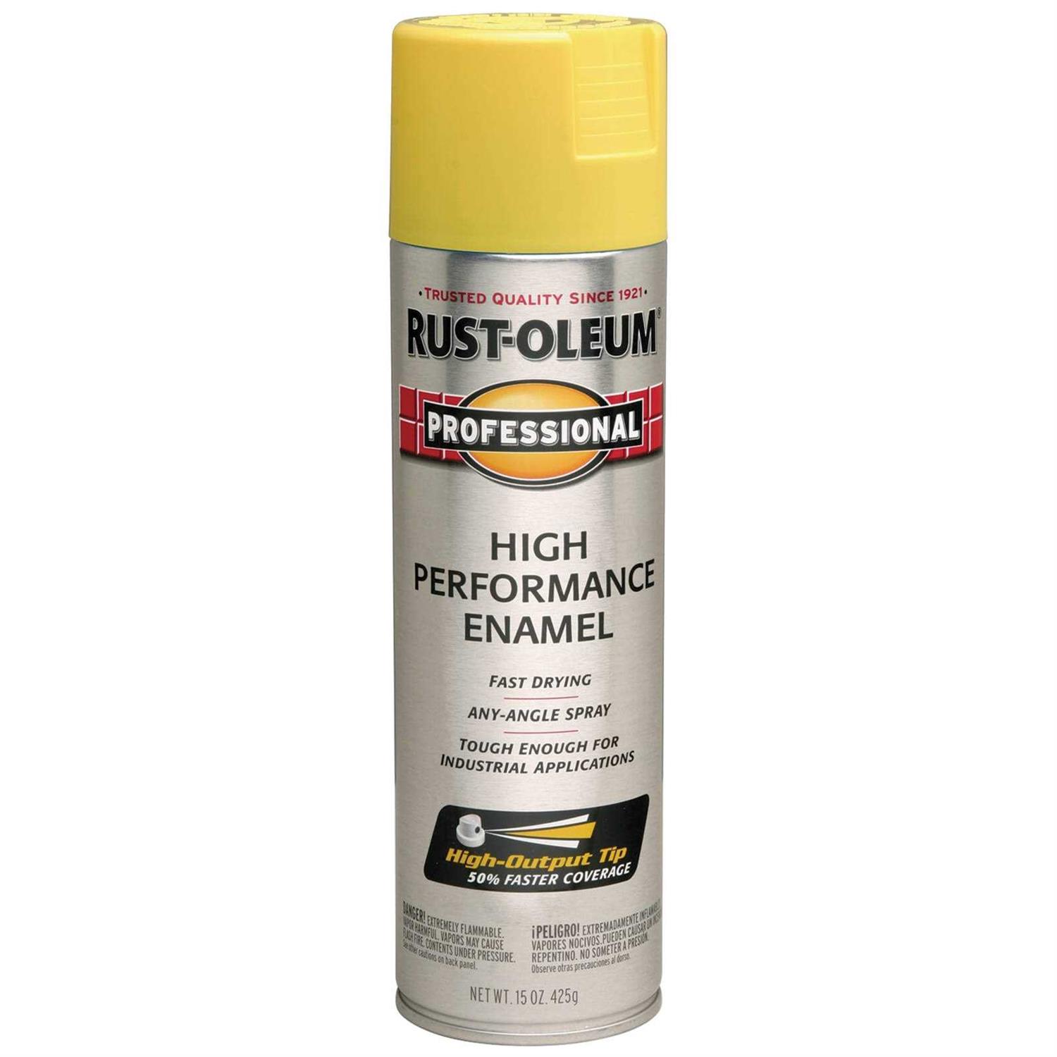 Professional Enamel Sprays provide a durable protective coating with superior rust prevention and excellent protection from abrasion fading chipping and dulling. For use on interiorexterior surfaces including metal wood concrete and masonry. Applies easily and features a high output tip that can be sprayed at any angle. Dries to the touch in 15 minutes and covers up to 14 sq ft for quick project completion. Provides excellent coverage and a tough industrial strength finish. Commercial-quality finish maintains long lasting corrosion-resistant color despite the elements.
