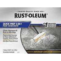 Rust-Oleum QUICK PREP 3-IN-1 combines the three most important steps to properly prepare your concrete into one step. Proper surface preparation maximizes the durability and life of your coating. With QUICK PREP, clean, degrease and etch in one easy step to allow for proper adhesion of coatings, paints and stains. QUICK PREP saves you time and money while ensuring maximum adhesion for any concrete-coating project.
