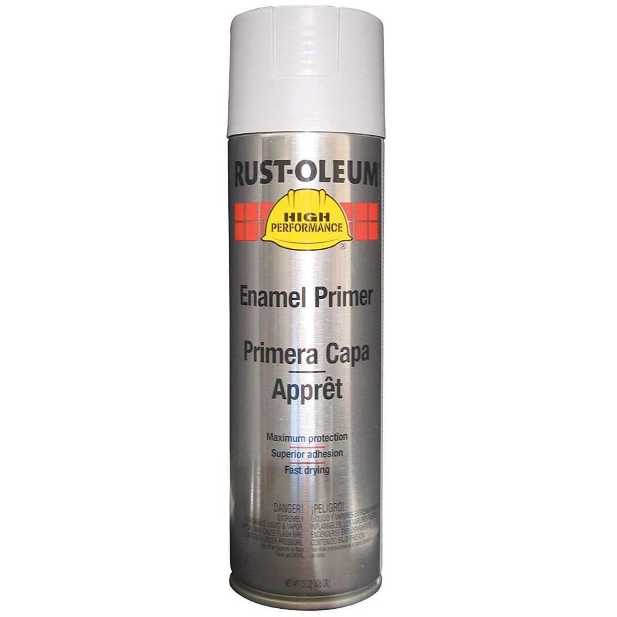 Rust-Oleum High Performance V2100 System Enamel Aerosol primer provides a corrosion-resistant finish featuring superior coverage. Apply directly to clean rusted or previously painted metal for a smooth finish ready to top coat. Advanced formula provides the best-possible corrosion protection with easy one-coat coverage. Covers up to 20 sq ft and dries to the touch in 20 minutes for quick project completion. Delivers a smooth flat non-reflective finish ready for topcoat. Durable professional coating provides superior resistance to chipping cracking and peeling. Offers any-angle spray technology along with a comfort spray tip to reduce finger fatigue. Meets USDA requirements for incidental food contact.