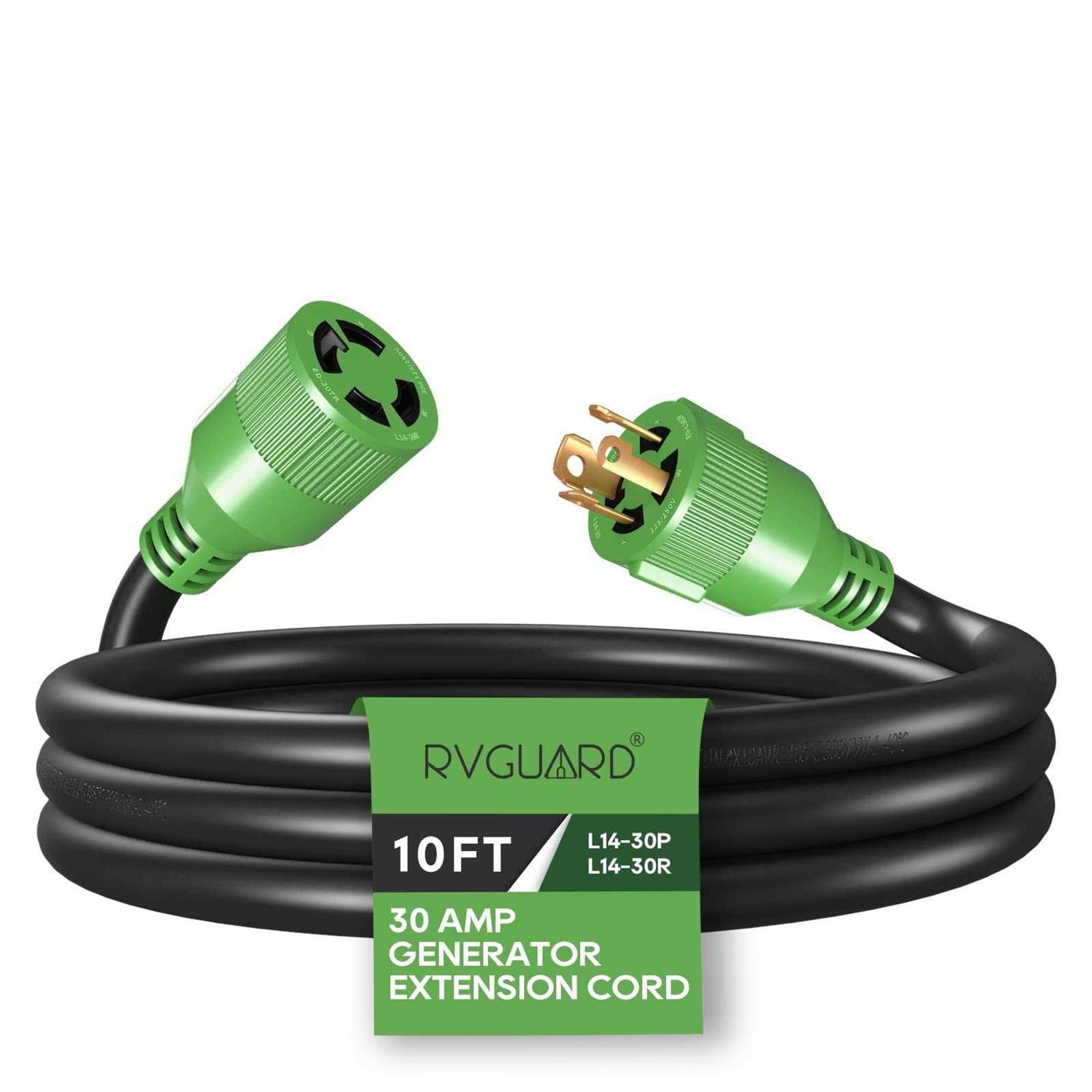 RVGUARD 4 Prong 30 Amp 10 Foot Generator Extension Cord, NEMA L14-30P/L14-30R, 125/250V Up to 7500W 10 Gauge SJTW Generator Cord