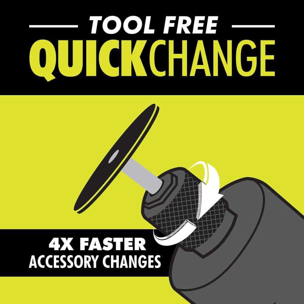 RYOBI introduces the 18V ONE+ Rotary Tool Station. This tool provides enhanced power with a variable speed dial that allows users to choose from 5,000 – 35,000 Rated RPM to complete a variety of projects. This rotary tool station is also the quietest in its class which makes it perfect for use in most workspaces. With 35 included accessories and on-board accessory storage, the Rotary Tool Station delivers convenience while completing a range of applications. The 36 in. flexible shaft pen design maximizes precision and comfort. This tool also features the new innovative Quick-Change Collet with 4 times faster accessory changes, which makes switching accessories quick and easy.