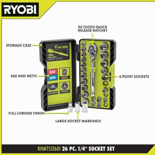Be the first to review “Ryobi 26-Piece 1/4 in. Drive Ratchet and Socket Set”