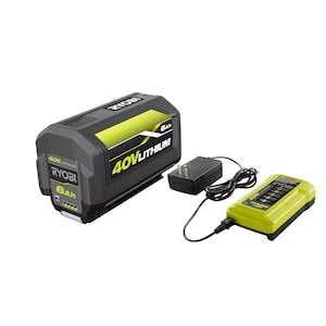 If you have a large yard or need extra run time, the RYOBI 40-Volt 6.0 Ah high capacity battery is the perfect addition to your RYOBI 40-Volt collection. This 6.0 Ah battery lasts 3X longer than the RYOBI 40-Volt 2.0Ah Compact Battery, while delivering the same fade-free power and performance. All RYOBI 40-Volt batteries come with an on-board fuel gauge to display remaining runtime. The included charger features an innovative charging technology, it is equipped to protect and extend the life of the battery. This charger is compatible with all RYOBI 40-Volt batteries. Perfectly made easy to set up.