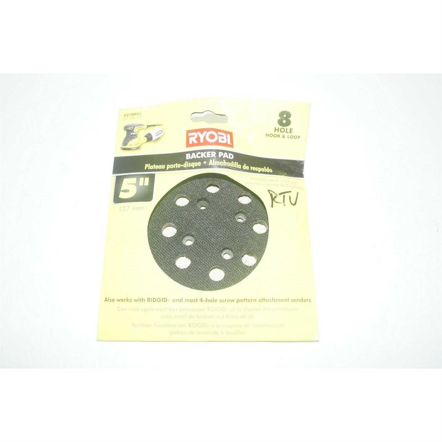Fits all 5 in. Ryobi random orbit sanders Backing pad works with all PSA sandpaper Hook-and-loop conversion pad for fast, easy changes Pad has an 8-hole pattern for increased dust collection Ryobi introduces the Ryobi Backing Pad. This backing pad is compatible with all Ryobi random orbit sanders. The backing pad can be used with any PSA sandpaper type.