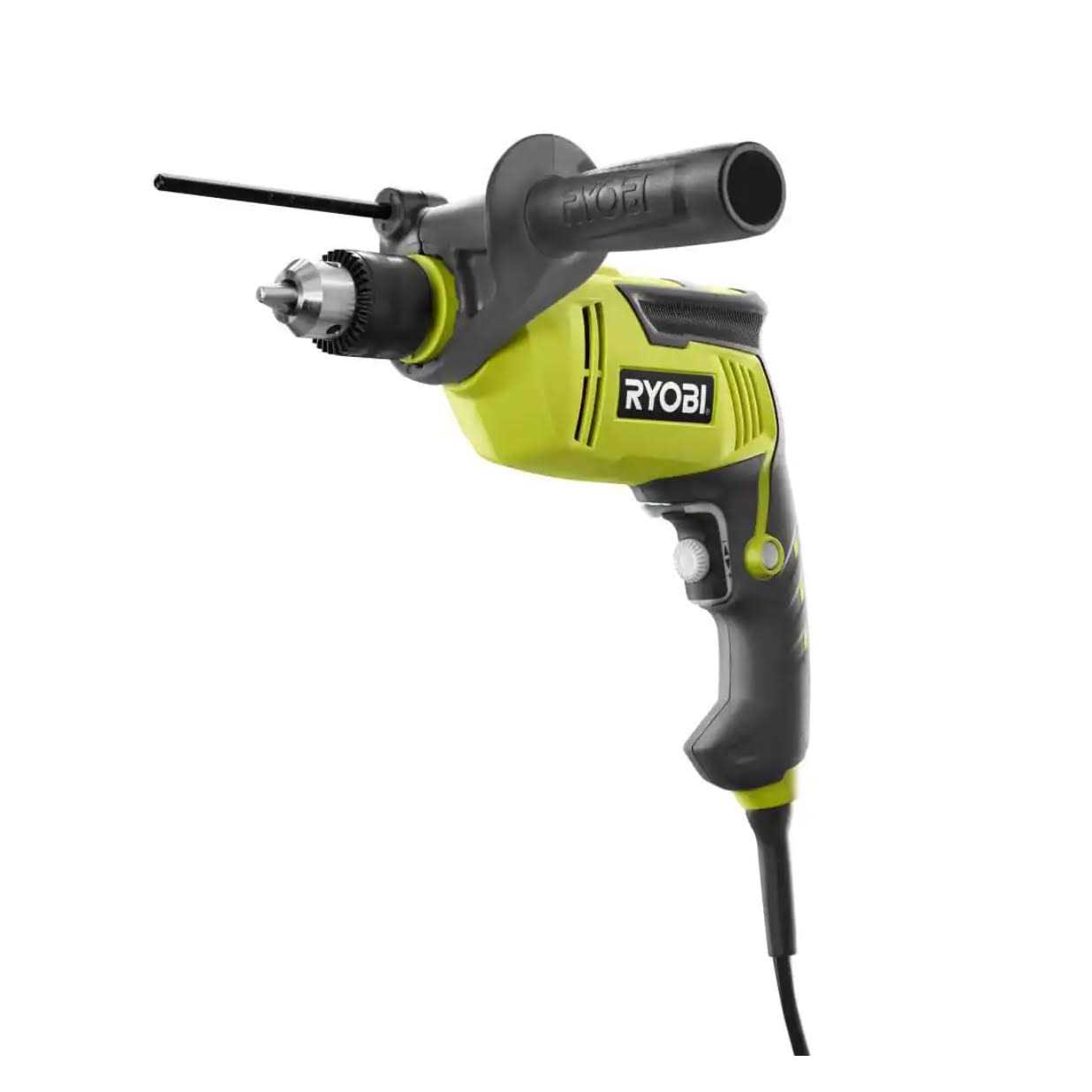 This RYOBI 5/8 in. VSR Hammer Drill features a powerful 6.2 amp motor to handle a variety of applications. Use the large, top slide button to choose hammer or drill action and the auxiliary handle for improved handling. It has an ergonomically designed handle with GripZone for added comfort on all-day tasks. Enjoy the reliability and endurance of metal gears, ball bearing construction and a heavy duty, 1/2 in. keyed chuck.