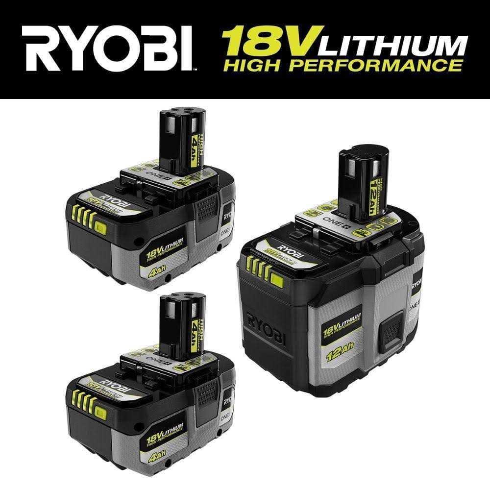 RYOBI ONE+ 18V 12.0 Ah HIGH PERFORMANCE Battery and 4.0 Ah HIGH PERFORMANCE Batteries