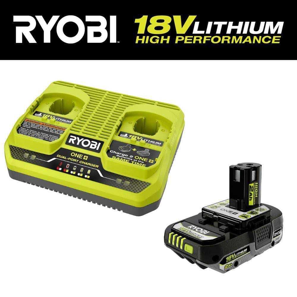 Ryobi One+ 18V Dual-Port Simultaneous Charger with One+ 18V 2.0 Ah Lithium-Ion High Performance Battery