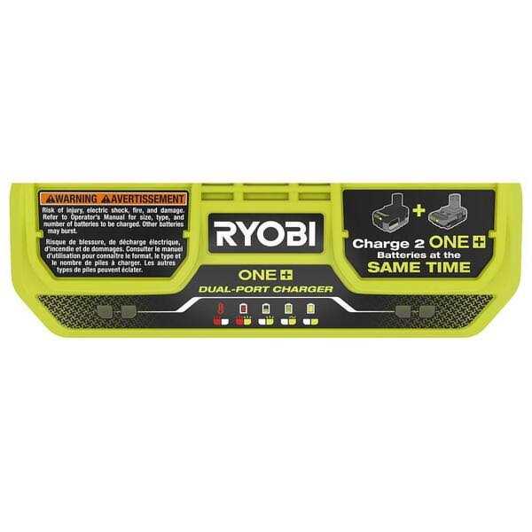 RYOBI ONE+ 18V Dual-Port Simultaneous Charger with ONE+ 18V Ah Lithium-Ion HIGH PERFORMANCE Battery