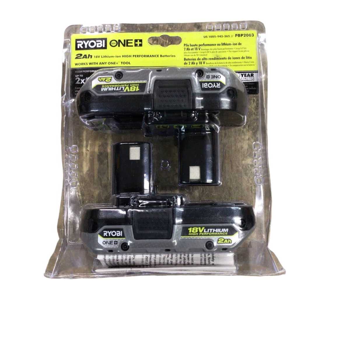 These RYOBI ONE+ 18V Lithium-ion HIGH PERFORMANCE 2Ah batteries provide up to 2X more runtime, 30% more power, and runs cooler compared to our standard lithium-ion batteries to provide long-lasting reliability and better performance in over 225 ONE+ tools. These HIGH PERFORMANCE batteries also feature the most advanced on-board battery electronics that monitor voltage, temperature, and current to extend the life of the battery. When you pair these HIGH PERFORMANCE batteries with any ONE+ HP tool, advanced technology allows them to communicate to provide the best performance possible that powers through heavier applications and protects against overloading and overheating. They perform in extreme weather temperatures and are engineered to be impact resistant. These batteries features integrated LED fuel gauges to check your battery charge at all times. Best of all, they are a part of the RYOBI ONE+ System of over 225 Cordless Tools that all work on the same battery platform.Features Up to 2X more runtime Up to 30% more power Runs cooler HIGH PERFORMANCE Technology features the most advanced battery electronics for overload and overheating protection Pair with ONE+ HP tools for optimized performance Integrated LED fuel gauge to monitor remaining runtime Delivers fade-free power in extreme weather conditions Monitors voltage, temperature, and current for longer battery life Robust construction to protect against impact Lithium-ion chemical composition resists drainage when idle Easily snaps into place and detaches with quick-release buttons Recharge on any 18V ONE+ charger Part of the RYOBI 18V ONE+ System of over 260 cordless tools Includes: (2) PBP003 18V ONE+ Lithium-Ion HIGH PERFORMANCE 2.0 Ah Batteries Charger sold separately Dimensions Product Height (in.): 3.43 in Product Length (in.): 5.32 in Product Width (in.): 3.12 in