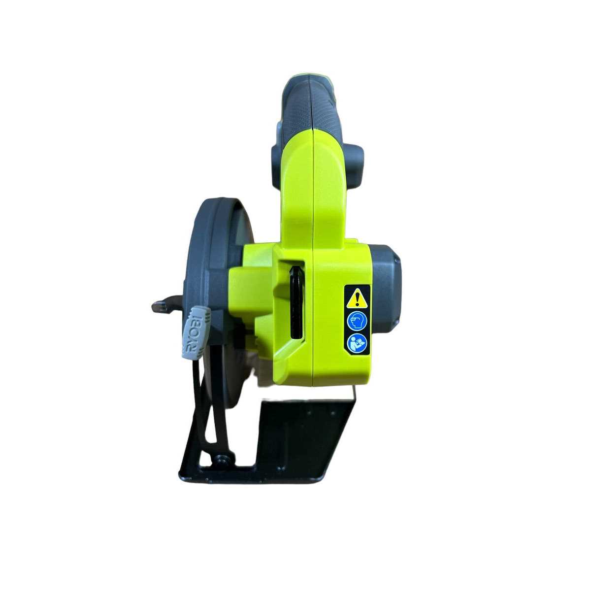 The RYOBI 18V ONE+ HP Brushless line of products is redefining power and performance. Circular Saw features a brushless motor delivers, which 40% faster cutting and over 325 cuts per charge, to outperform your previous tools. The die cast upper guard provides greater durability in any work environment. Use the vacuum dust adaptor to keep your work surface and area clean as you cut, for a quick clean up at the end of the job. Achieve a clean cut every time with adjustable depth gauge and ultimate precision with the bevel gauge. This tool will elevate your ONE+ collection with its accuracy and speed. Best of all, it is part of the RYOBI ONE+ System of over 280 Cordless Products that all work on the same battery platform. Brushless motor delivers up to 40% faster cutting Over 325 cuts per charge using an 18V ONE+ 6Ah battery 0-56 degree bevel capacity for cut versatility Adjustable depth guard for cutting up to 2-7/16 in. depth of cut at 0 degree and 1-3/4 in. at 45 degree Die cast upper guard for increased durability Vacuum dust adaptor is compatible with 1-7/8 in. and 1-1/4 in. hoses for a cleaner work surface On-board LED worklight to illuminate workspace for clear cut line visibility Perfect for professional jobs Part of the RYOBI 18V ONE+ System of Over 280 Cordless Products DAMAGED BOX
