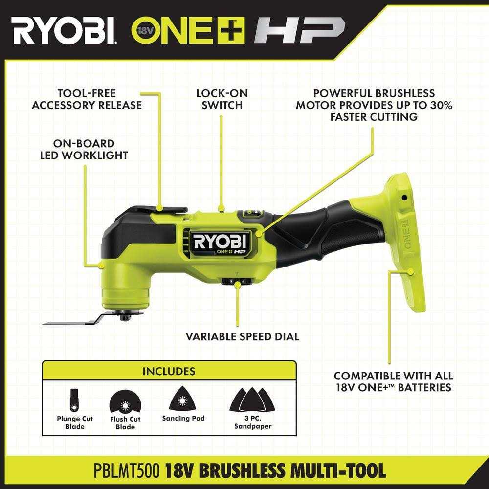 - Includes: 1 x 18V ONE+ HP Lithium-Ion Brushless Cordless Multi Tool (tool only) and User Manual