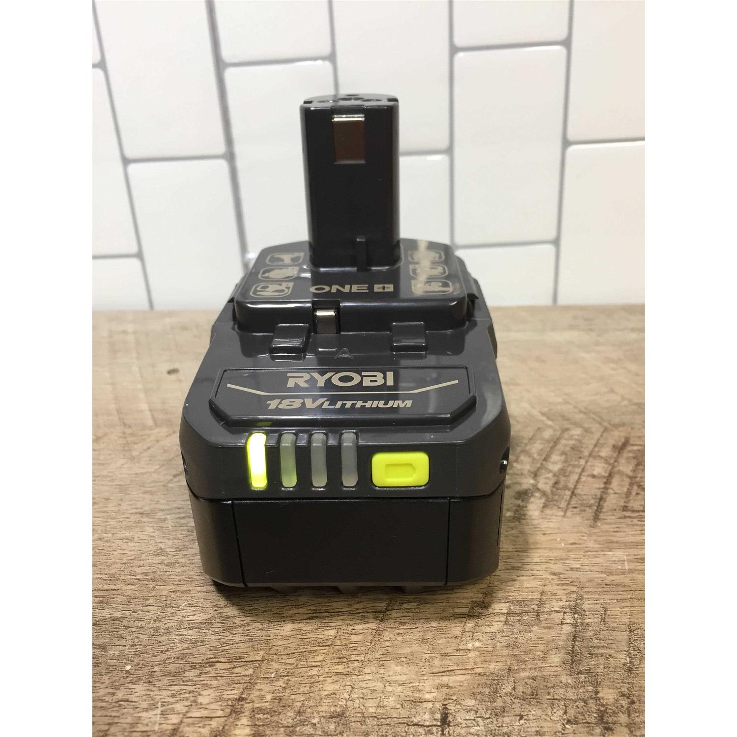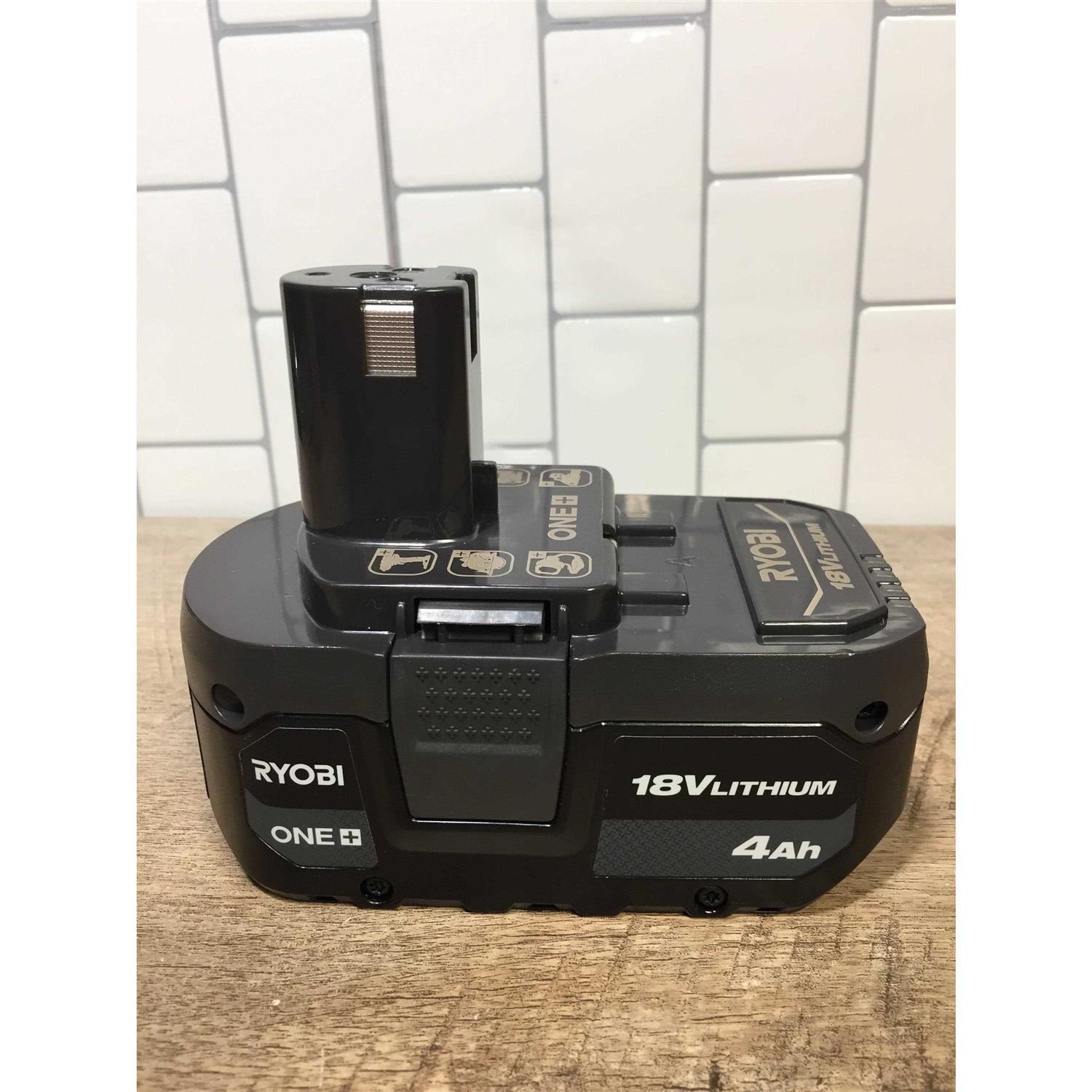 Battery Packs by RYOBI. Details:Up to 3X More Runtime High Visibility LED fuel gauge clearly indicates remaining runtime Over 260 ONE+ Tools – All Work With Any RYOBI 18V ONE+ Battery Enter the RYOBI 18V ONE+ System with the 18V ONE+ 4Ah Lithium-ion Battery. With up to 3X more runtime than the previous model, this lithium-ion battery provides an improved user experience. The new compact design is lighter weight and reduces overall user fatigue. This battery features a high visibility LED fuel gauge to clearly indicate remaining runtime. Fade-free power allows users to optimize the entire charge of the battery in all weather conditions. The robust design and anti-vibration technology increases durability and enhances user experience. Easily install and remove the battery with secure quick-release latches. Best of all, they are a part of the RYOBI 18V ONE+ System of over 260 Cordless Tools that all work on the same battery platform. Charger sold separately.