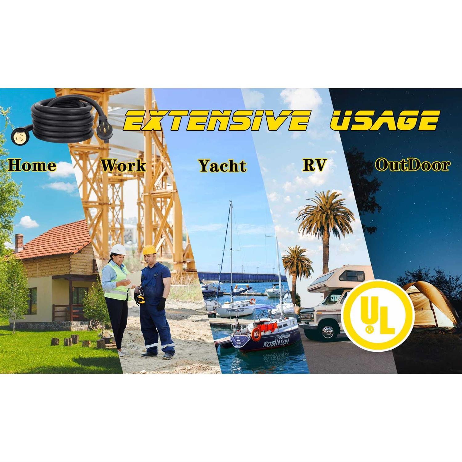 14-50P & Cs6364 Lug (Male): 14-50P With Handle, Elbow Plug Style For Strain-Relief Receptacle (Female): Ss2-50R, Locking Style 20 Feet Length Durable Materal The Resistant Stw Cord Is Made For Heavy Duty Construction, It Is Built To The Highest Quality Standards. Wide Applicationocking Collar For Enhanced Protection From The Elements, While In Use,Max Rating: 12, 500 Watts. This Cord Is Perfectly Suitable For Camping, Tailgating, Outdoor And Sporting In Spite Of Hurricane Season And Other Bad Weathers.