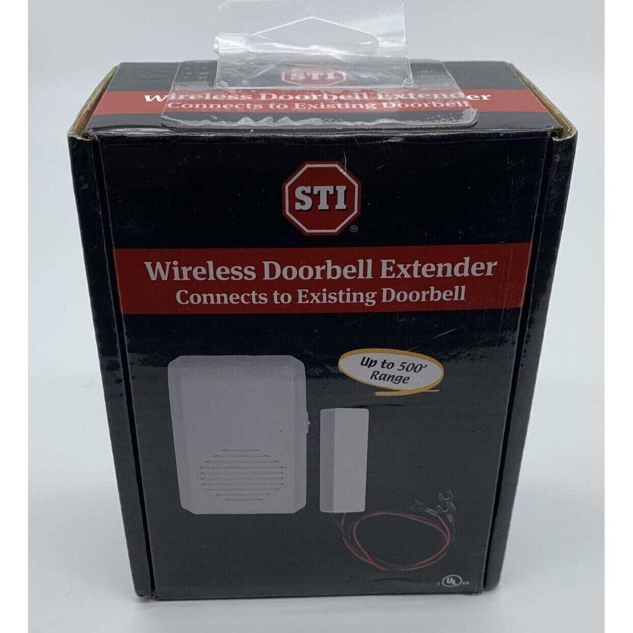 Hear your doorbell chime at an additional location in your home by setting up the STI Wireless Doorbell Extender with Receiver. This complete DIY kit comes with a wireless receiver that plugs into an outlet up to 500 feet away from your existing doorbell chime to alert you when the button is pressed. The included “extender” wires into your existing hardwired doorbell chime. When the existing chime receives a signal from your doorbell button, the extender also triggers and sends a wireless signal to the receiver. The receiver then alerts you by chiming. Your existing doorbell will chime as well. The receiver provides 2 alert sounds to choose from, allowing you to customize your chime, and also differentiate between various transmitters (sold separately). As part of the STI Wireless Chime Series, the included receiver can be used to monitor up to 10 wireless transmitters total (sold separately).