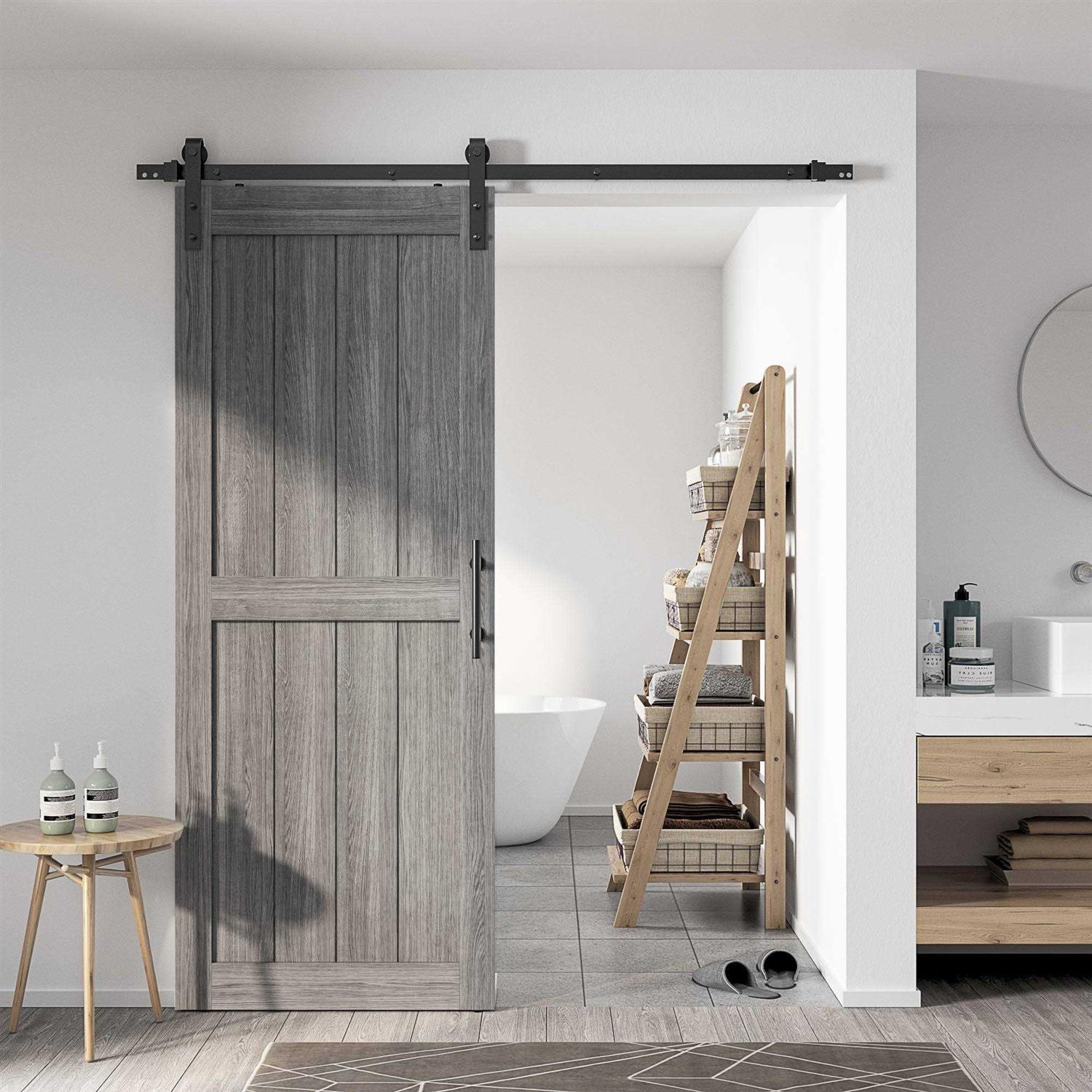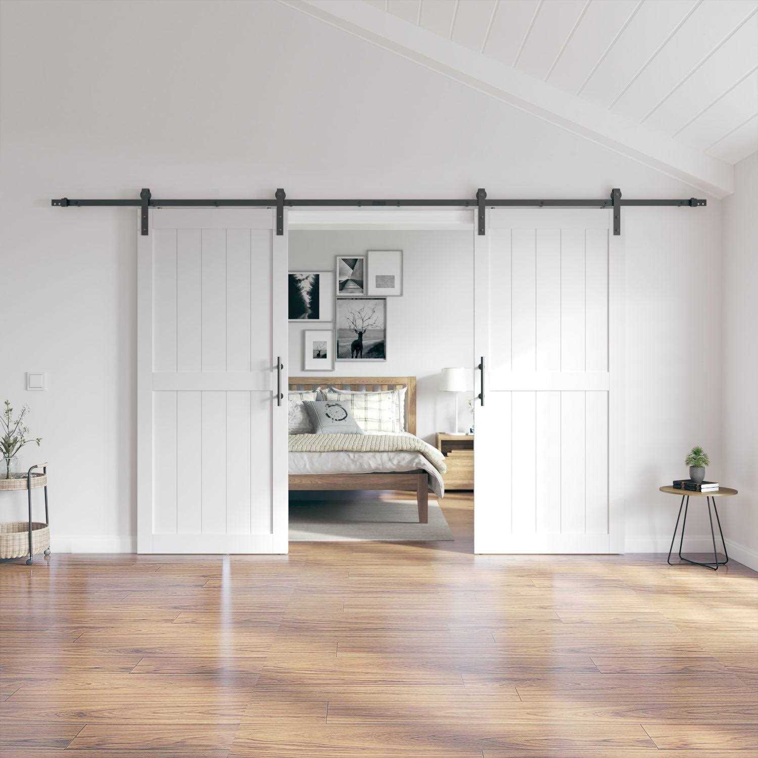 Sanding 32 in. x 84 in. MDF Sliding Barn Door with Hardware Kit, Covered with Water-proof PVC Surface, White, H-Frame