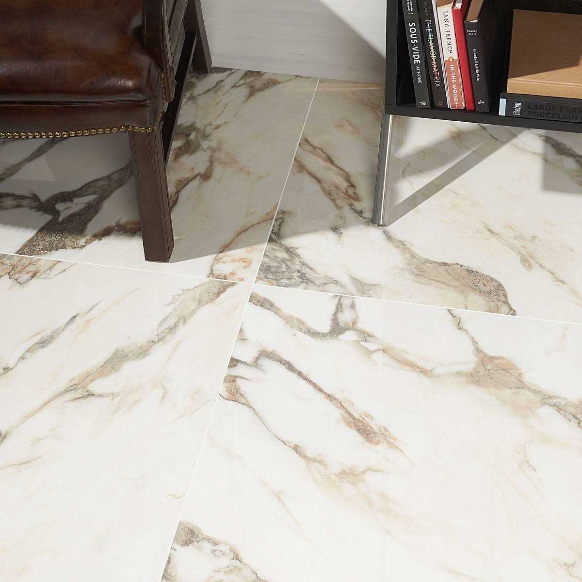 Ivy Hill Tile Saroshi Calacatta Rustico 23.62 in. x 23.62 in. Polished Marble Look Porcelain Floor and Wall Tile (15.5 Sq. ft./Case)