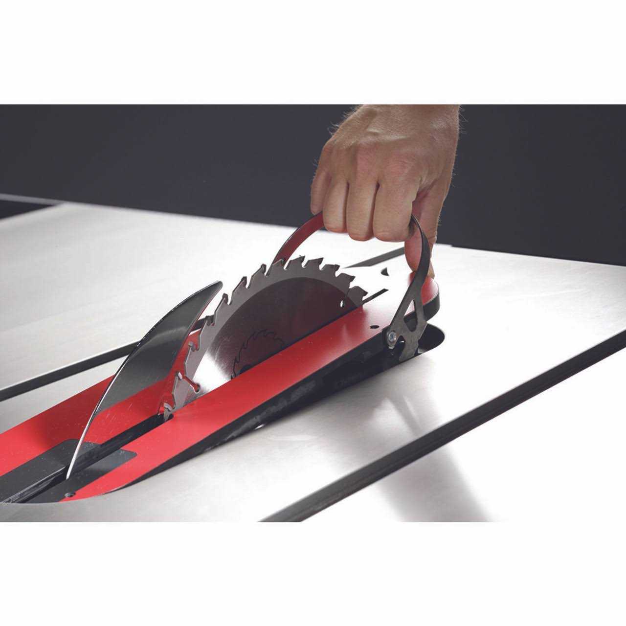 Precision machined from a high quality, ultra strong phenolic that is covered on top and bottom with a low-friction melamine surface. Set screws ensure a solid and precise fit in the table. Pre-formed slots for Saw-Stop blade guard and riving knife. Positive locking latch allows for tool-free operation.