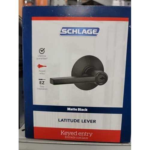 Schlage Latitude Matte Black Keyed Entry Door Lever