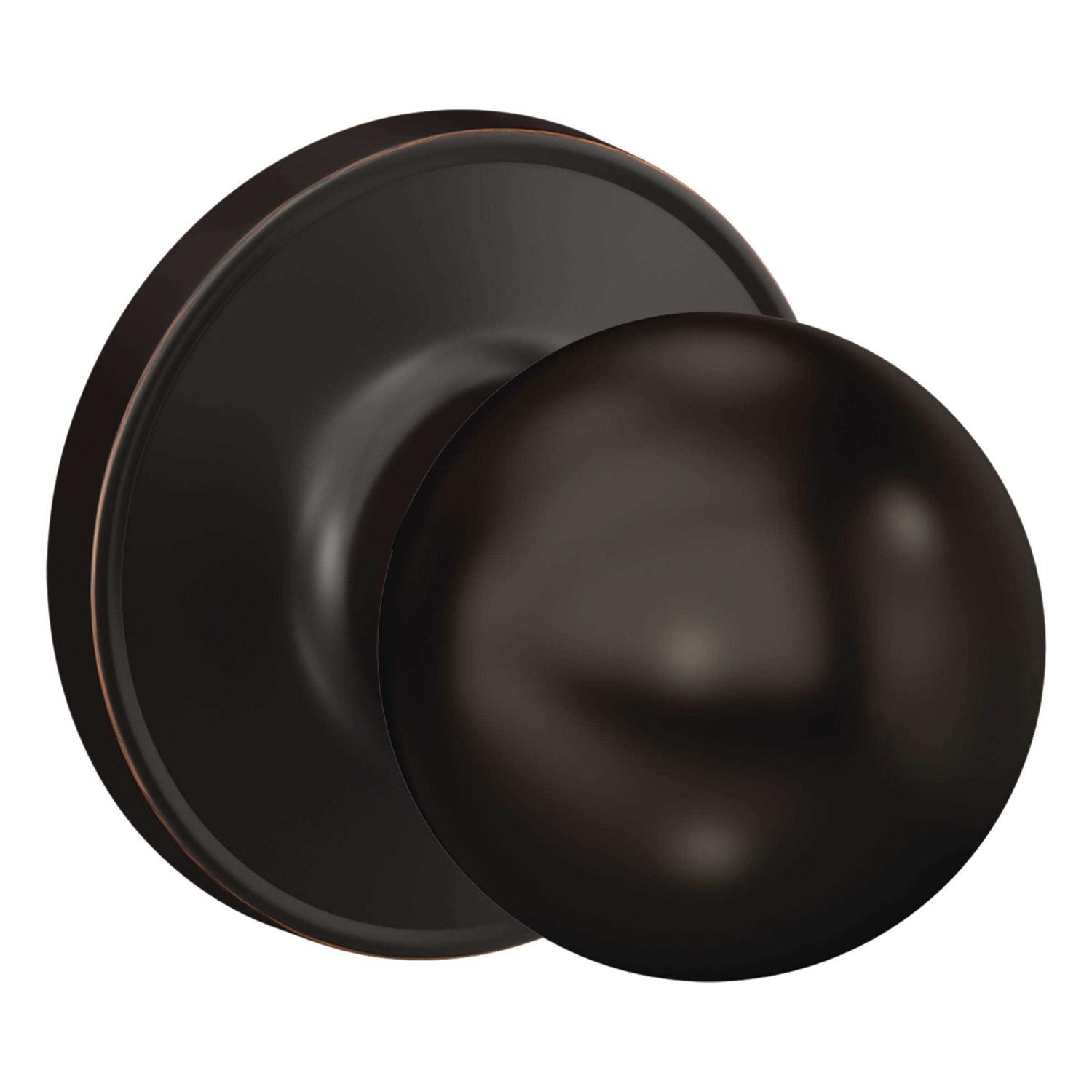 The First Secure by Schlage Rigsby Aged Bronze Steel Hall/Closet Passage knob offers durability and convenience from a reputable name in door hardware at an exceptional value. It is non-locking and ideal for interior hall and closet doors. Plus, it is backed by our limited lifetime mechanical guarantee.